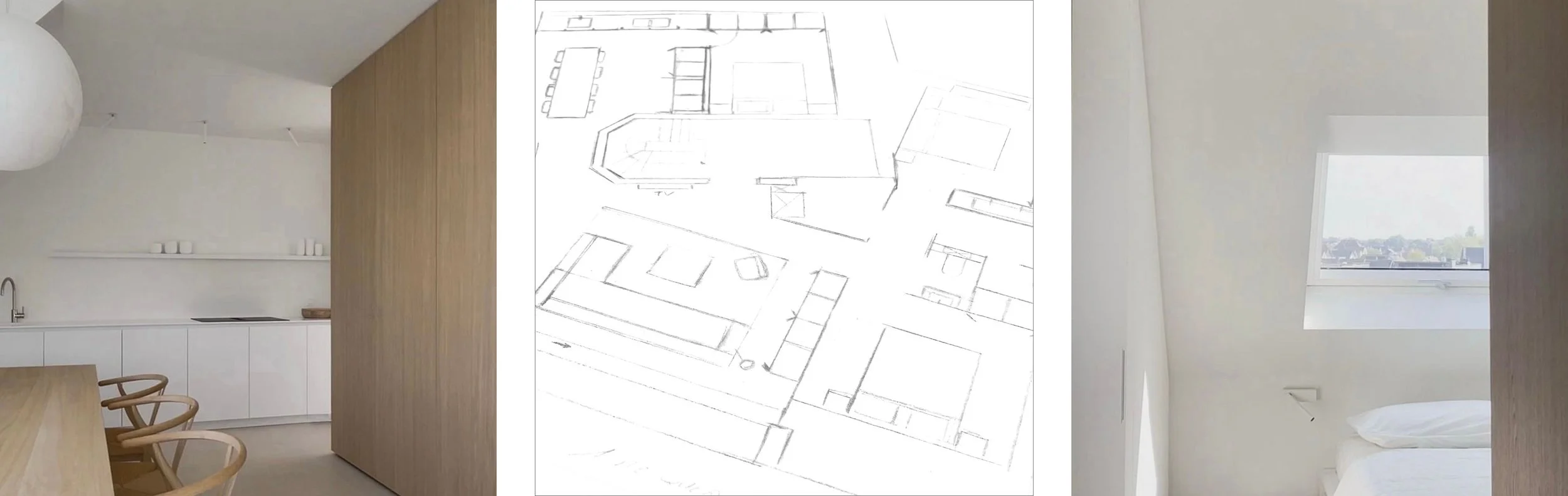 At Ante Quercus, everything revolves around the art of omission. Our designs combine maximum comfort with an understated, minimalist design. We opt for warm, natural materials, subtle lighting and a well-thought-out layout. Every detail contributes to a calm and spacious experience, in which aesthetics and functionality are in perfect balance. A clever reorganisation of the space often makes more possible than you think. For example, we recently transformed a penthouse from two to three full bedrooms - without adding any extra square metres. Thoughtful design is about seeing what is possible.